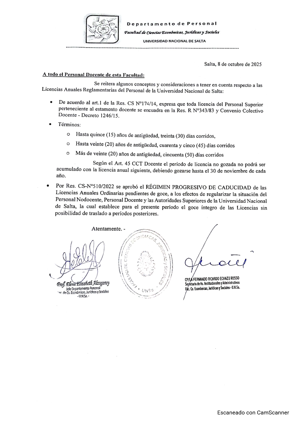 Se informa que el día 17/10/25 el Departamento de Personal atenderá al público solo hasta 14hs.