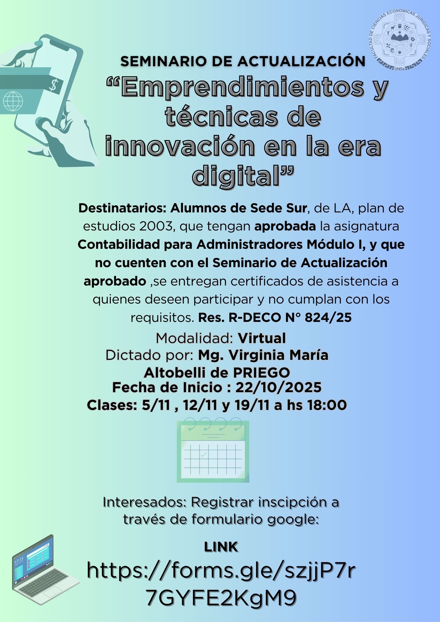Desde el 20/09/25 hasta el 15/11/25 en el SIU GUARANÍ, se encontrará disponible la Encuesta de Opinión de Desempeño de los Docentes y de la Cátedra, correspondiente a aquellas asignaturas dictadas en el primer cuatrimestre del presente período lectivo. La misma debe ser completada por los alumnos pertenecientes a la Facultad de Ciencias Económicas, Jurídicas y Sociales.
