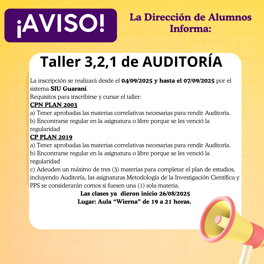 Destinatarios: Estudiantes del plan de estudios 2003 de las carreras Contador Público Nacional, Licenciatura en Administración y Licenciatura en Economía que adeuden tres, dos o una asignatura y el Plan de Trabajo Final.