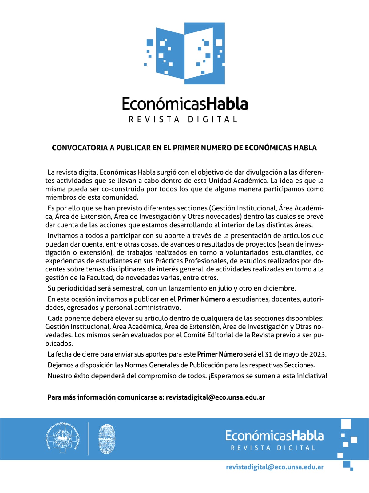 Nos comunicamos con usted para informarle que desde la Secretaría de Investigación y Extensión hemos impulsado la creación de la revista institucional Económicas Habla.