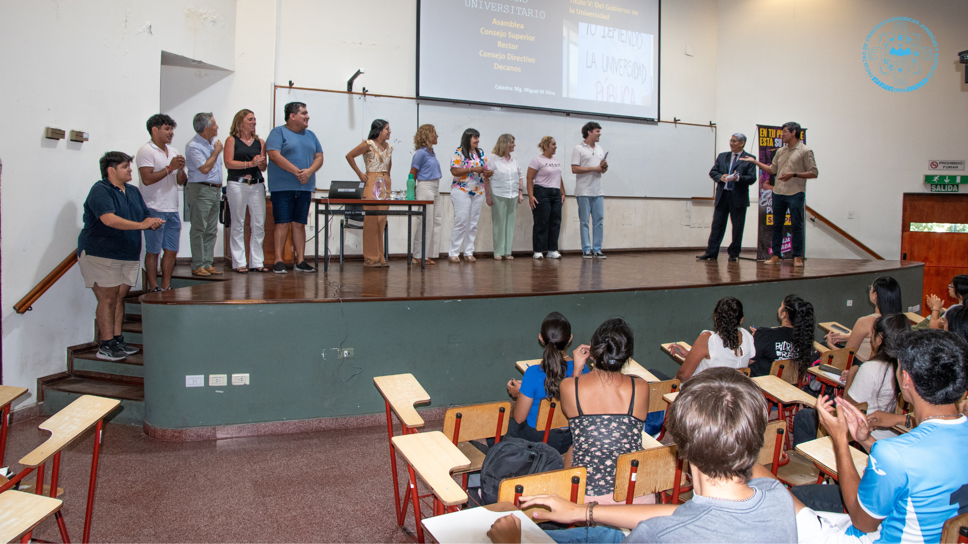 La Vice Decana Mg. Angélica Elvira Astorga, junto con la Secretaria de Investigación y Extensión Lic. Teodelina Zuviria, la Secretaria de Asuntos Académicos Cra. María Rosa Panza de Miller, y el Secretario de Asuntos Institucionales y Administrativos Cr. Juan Alberto Mariscal, dirigieron emotivas palabras a los presentes, destacando la importancia de la labor que desempeñan cada día.