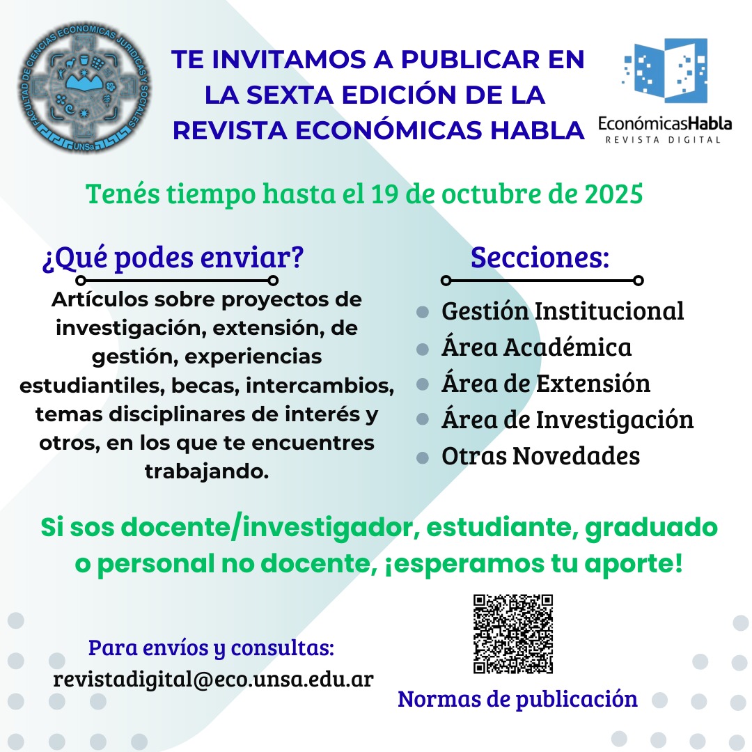 Ya podés enviar tu artículo para la 6° edición de la Revista Económicas Habla.