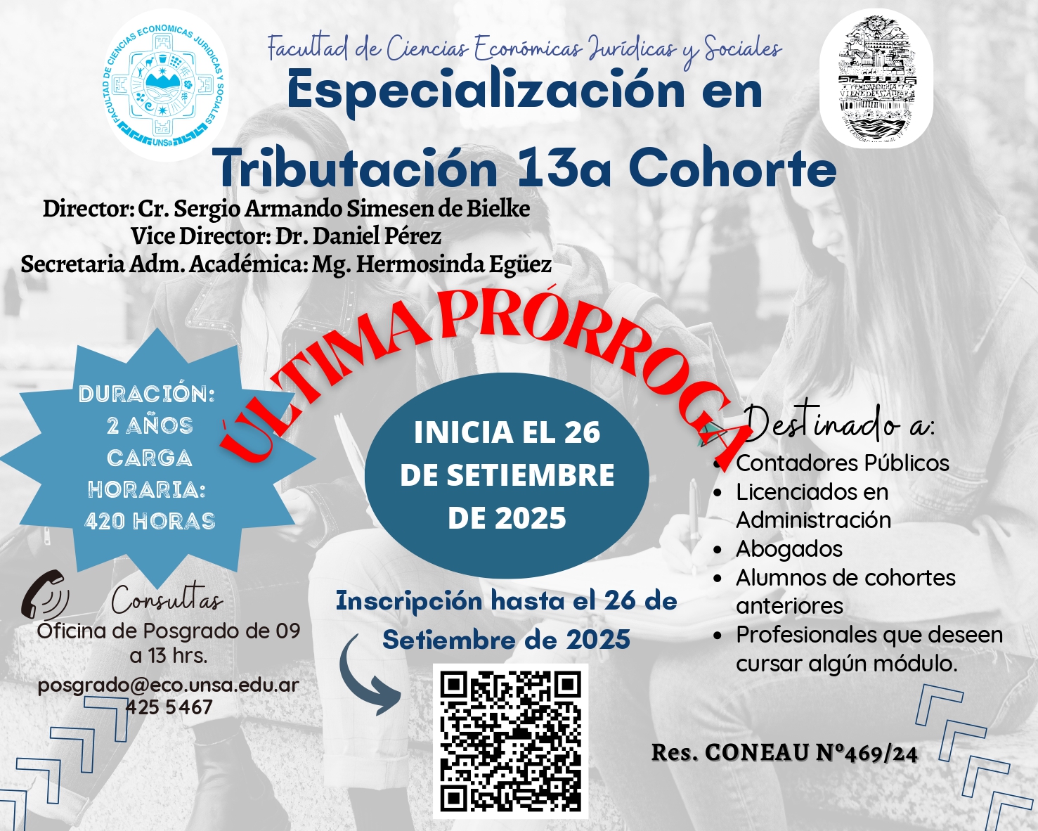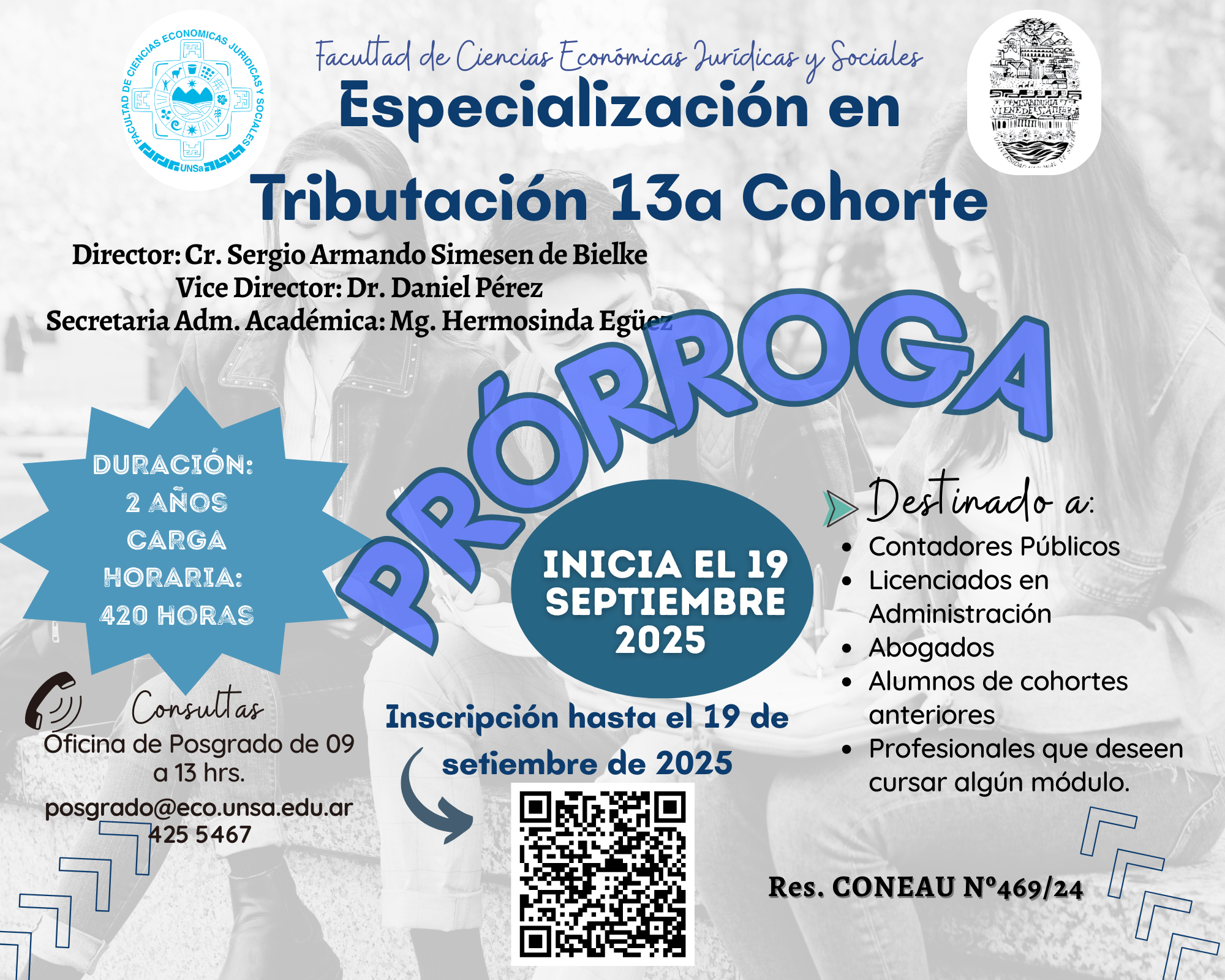 La Secretaría de Investigación y Extensión de la Facultad de Ciencias Económicas, Jurídicas y Sociales de la UNSa informa las siguientes fechas relevantes para la comunidad universitaria: